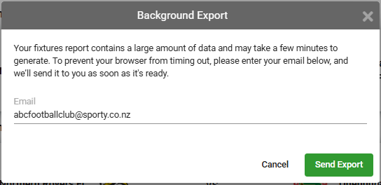 Depending on the number of fixtures you are exporting you may be prompted to enter your email address to have the export report emailed to you.